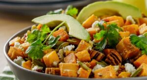 Incorpora camote en tus ensaladas para darles un toque de dulzura y color. Asar cubos de camote y mezclarlos con espinacas, palta, nueces y un aderezo de limón y miel.